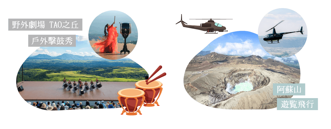 再乘上直升機從空中遙望阿蘇火山的壯闊全貌,俯瞰大地的呼吸與火山的生命力。