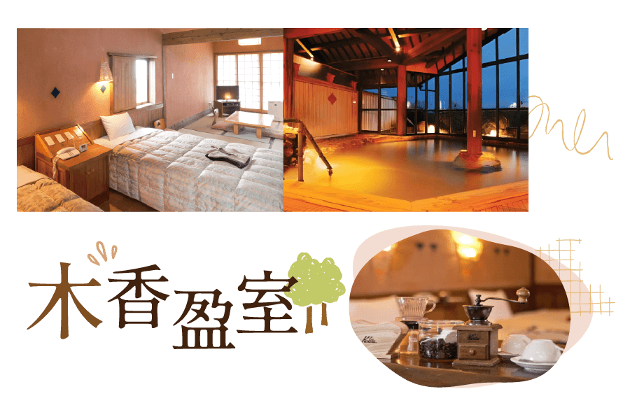 客室以溫潤木質與柔光打造,窗外即是遼闊的久住山景。部分房型附設露天風呂,能在晨霧或繁星下浸泡,享受與自然融為一體的靜謐時光。