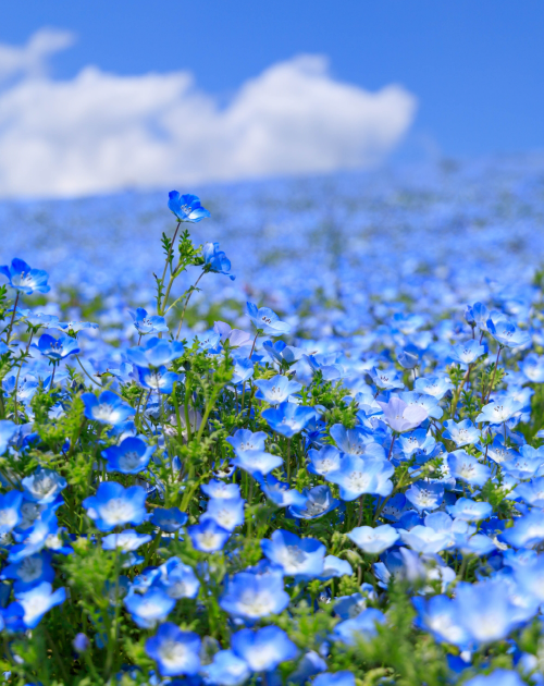 常陸海濱公園最著名的景觀就是每年春季盛開的粉蝶花,也被稱為「嬰兒藍眼」。公園內擁有530萬株粉蝶花,它們在見晴之丘上綻放出夢幻般的藍紫色,形成一片壯觀的花海。